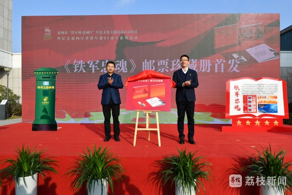 活动当天,“铁军主题邮局”正式对外开放。该主题邮局是中国邮政盐城分公司与新四军纪念馆联合打造,由“邮票上的党史”文化展示墙、邮品销售区和书写区三部分组成,向大众展示邮文化与铁军文化。