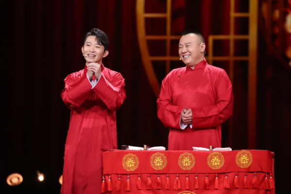 2018年演员邵峰表演的小品《匠心》表现工匠精神,选取修表师傅的小角度,以小见大地传递主题精神;2019年,张小斐和何欢演绎小品《幸福牛家村》,围绕“精准扶贫”政策的落实过程,把国计民生融入欢声笑语之中;2021年,在喜剧界表现抢眼的金霏、陈曦合作演绎了相声《你浪费了你知道吗》,聚焦“杜绝浪费”这一话题,提倡在日常生活中注意节约电能、纸张和食品。江苏卫视春晚语言类节目不仅融合了每年的热点话题,还打造出高质量的“连续剧”IP——由贾冰团队表演的小品“年终奖”系列,塑造了一个借钱也要发年终奖的“良心老板”形象,串联起多档欢笑与感动并存的优质佳作。