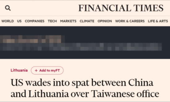 【环球网报道】立陶宛想找美国撑腰的希望也要落空?英国《金融时报》20日爆料称,据几名知情人士透露,有美国外交官已向立陶宛建议,重新命名所谓“台湾代表处”,以缓解与中国的紧张关系。报道同时提到,白宫和立陶宛外交部对这一说法的反应,都是不承认。