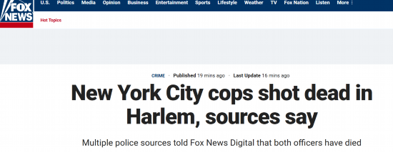 据纽约警察局发言人证实,这两名警员在West 135th Street 119号附近遭到枪击,目前无法得知他们的具体情况。但多名警方消息人士表示,这两名警员已经死亡,嫌疑人有可能已经自杀。