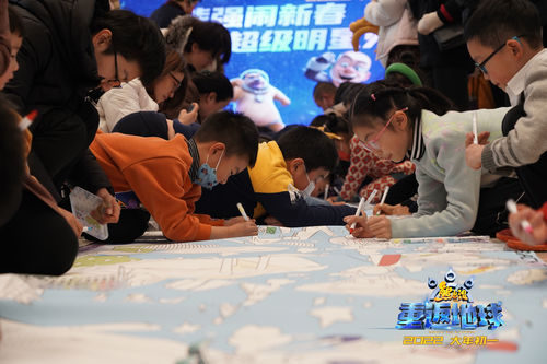 在点映过程中,《熊出没·重返地球》也同时在南京开展了“熊强闹新春,欢乐中国年”为主题的“熊出没亲子见面会”,“熊强飞天,欢乐新年”的趣味填色接力吸引不少小朋友共同绘制巨幅画卷,一笔一画,绘出我们的太空中国年,用想象力为中国航天事业送上自己的祝福。