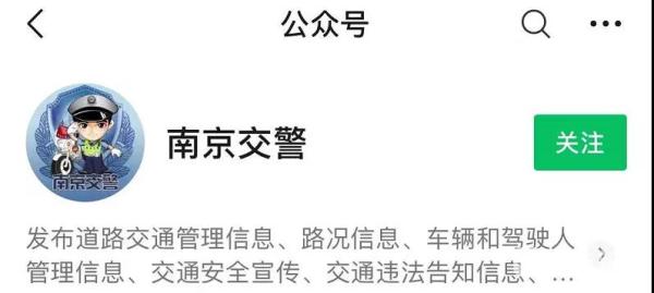 关注“南京交警”微信公众号。