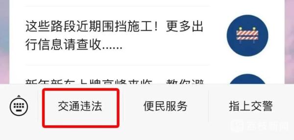 点击公众号菜单栏“交通违法”。