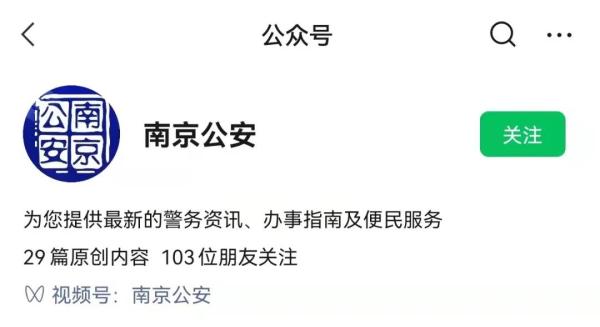 步骤一:关注“南京公安”微信公众号。