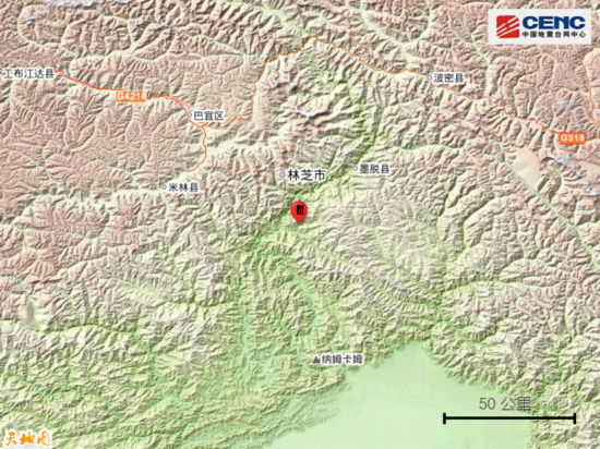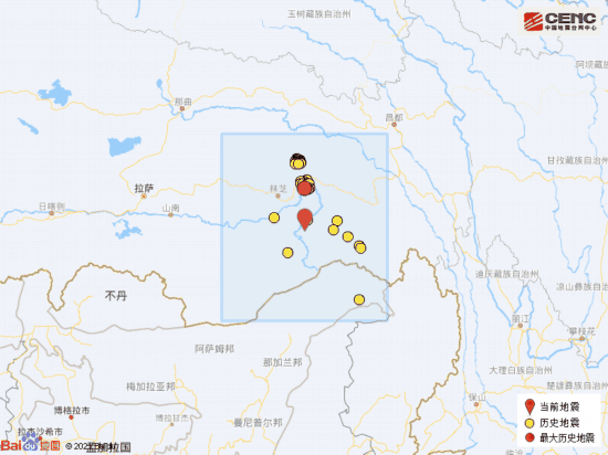 历史地震:根据中国地震台网速报目录,震中周边200公里内近5年来发生3级以上地震共92次,最大地震是2017年11月18日在西藏林芝市米林县发生的6.9级地震(距离本次震中84公里),按震级大小前50次历史地震分布如图。