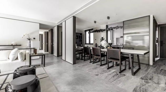 室内墙面可见的「竹林灰」、「屋漏痕」元素,把魏晋的潇洒飘逸印进居者的内心。