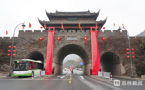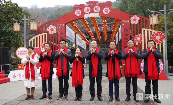 上午10点18分,在喜庆的鼓点声中,一副长12米、宽1.5米的大红春联在虞山阜成门上震撼亮相。这副巨幅春联上书“一脉虞山,一湖烟水,涌动千年活力;满门瑞象,满阜光华,化成十里春风。”充分展现了常熟深厚的文化内涵和历史底蕴,开启了新春气象,送来了虎年祝福。