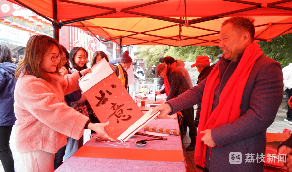活动现场,8名市文联书法家协会会员,举行了“小城大爱、春暖常熟”写春联送祝福活动,这也是常熟文联持续多年的新春文化惠民活动。短短1个小时,共书写祝福卷轴200卷、春联500副、福字100张。一位市民告诉记者:“我也去求了一副‘万事胜意’,就希望来年虎年嘛,金牛辞旧岁、瑞虎迎新春,能够顺顺利利,各方面都能够万事如意。”