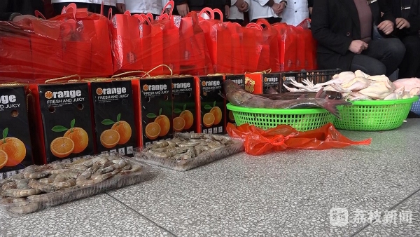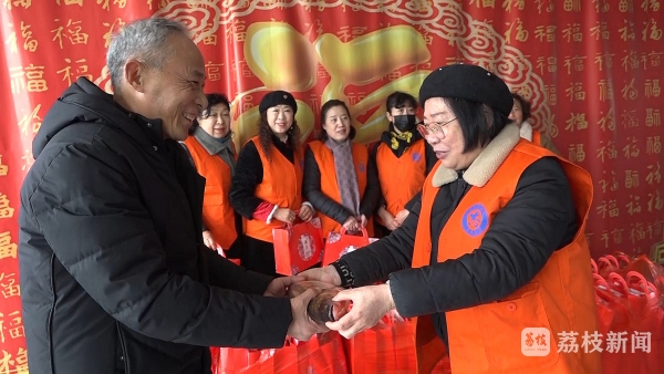 1月25日上午,东台市心连心志愿者协会副会长顾苏珍自费购买了鸡子、鲤鱼、猪肉、鸡蛋等年货和糖果糕点大礼包,与单位员工、爱心志愿者一起来到东台市东台镇敬老院,看望慰问生活在这里的近百名孤寡老人,并给他们送上新春的祝福。
