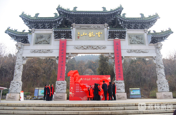 揭联仪式上,徐州市云龙湖风景名胜区管理委员会代表、书法家代表等人共同为春联揭开“红盖头”。