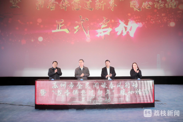 “念书能致远,书香品味风……”今天(1月25日)下午,在悠扬的弹词开篇中,2022年苏州市“全民阅读春风行动”暨“书香伴您过新年”暖心活动在吴中区太湖街道歌林小镇举行。