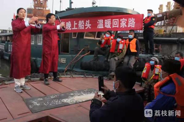 该中心徐州航道站老职工丁伟志带领2名年轻职工表演的诗朗诵“礼赞运河致敬百年”,使现场船员接受了一场党史的洗礼;还有歌曲“最亲的人”、知识问答等节目,与船员热烈互动,赢得阵阵掌声和欢笑,运河上呈现一派欢乐祥和的气氛。志愿者还与船员一起挂福字、贴春联,帮助船员打扫船舱,检查用电设施,共话新年美好,受到船员的热烈欢迎和一致好评。