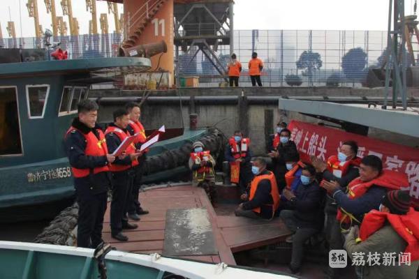 1月25日下午,为了丰富船员节日文化生活,苏北航务管理处徐州航务中心组织开展“小航伴你行温暖回家路”春运主题志愿宣传服务活动,由10名执法人员和志愿者组成的慰问队伍走上船头,为船员送文化、送安全、送祝福。