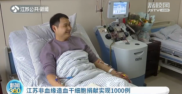 在东南大学附属中大医院,来自南京的90后志愿者祁金同,正在为一位14岁的血液病患者捐献造血干细胞,他也成为江苏省第1000例非血缘造血干细胞捐献者。