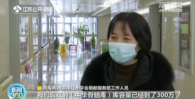 南京市红十字会捐献服务部工作人员周海燕表示:“大家现在的认知度提高了,很多的年轻人已经了解到了造血干细胞捐献无损健康、挽救生命,我们现在的中华骨髓库库容量已经到了300万。”