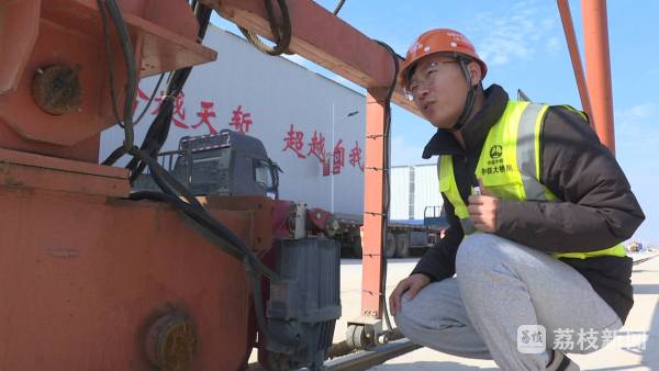 1月24日上午九点多钟,在位于宿豫境内的连宿高速公路8标段施工现场,24岁的机械设备管理员高俊明正在进行日常检查和维护。在详细了解现场机械设备的情况后,他再三叮嘱施工人员注意安全,防范于未然。高俊明告诉记者自己是2021年7月份从老家河南开封来到宿迁工作的,一天工作8个小时,早上7点半到11点半,下午是1点半到5点半,来到这边感觉工作环境还不错,住宿生活方面都比较好,对这里的一切都很满意。