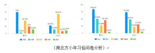 南北小年最大的不同,莫过于时间上的不同:北方小年是在腊月二十三,而南方则为腊月二十四。同学们将制作的问卷在全校范围内发放,对南北方小年在饮食、风俗方面的异同进行调查。问卷结果显示,在“吃汤圆vs吃饺子”的饮食习惯上南北方有较大的差别,南方人偏爱汤圆,而北方则更钟爱饺子。但在扫尘、祭灶方面,南北方习俗相似。无论南北,都有近80%的同学在这一天进行扫尘,表达自己在新的一年对“除陈布新”的美好期待。