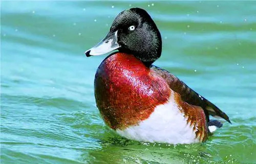 百度百科介绍,青头潜鸭(学名:Aythya baeri)是雁形目鸭科潜鸭属的鸟类。该鸟类体圆,头大,雄鸟头、颈呈黑色,并具绿色光泽,眼白色;雌鸟头、颈呈黑褐色,头侧、颈侧棕褐色,眼褐色或淡黄色。它们主要繁殖于我国东北地区,在华南大部分地区越冬,主要以水生植物为食。由于栖息地被破坏和过度狩猎等原因,青头潜鸭的数量在近30年间急剧下降,自2012年来持续被世界自然保护联盟(IUCN)列为极度濒危(CR)物种。