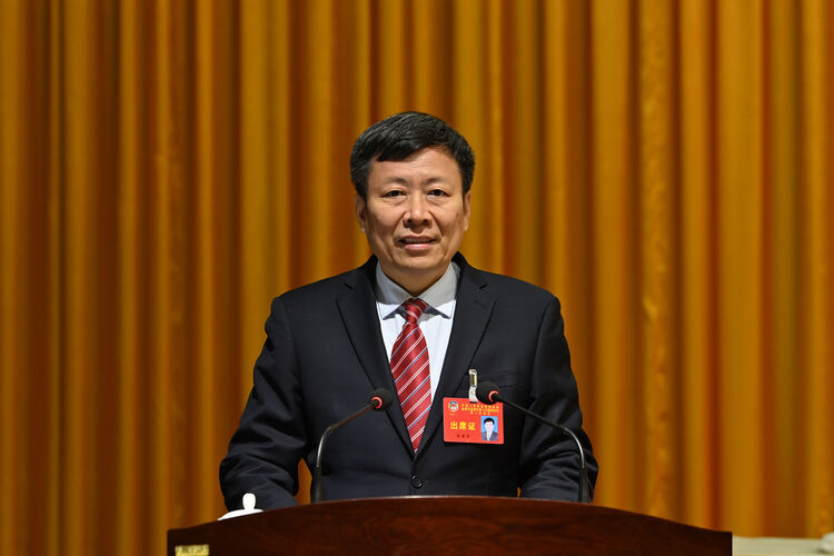 ▲区十四届政协主席、大会主席团常务主席张建洋向大会作工作报告