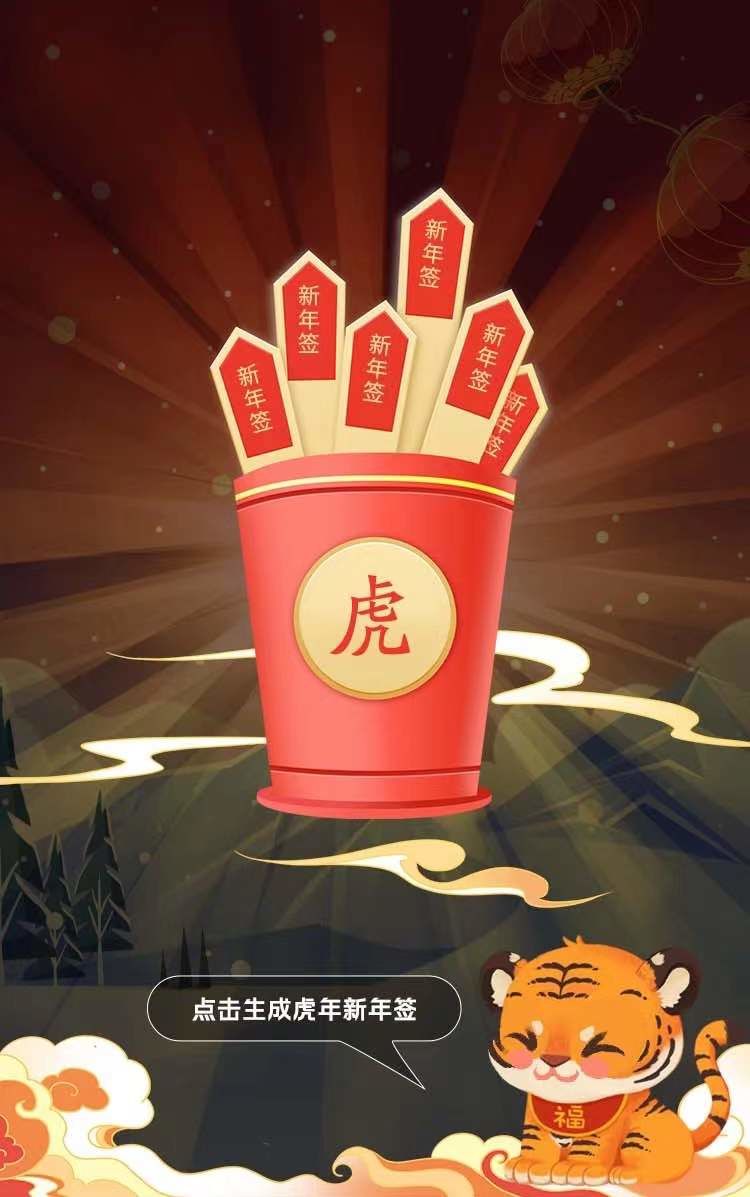 展示你的虎年新风貌后,参与者可以抽取专属新年签,属于你的虎年关键词是什么呢?快来抽一抽吧!