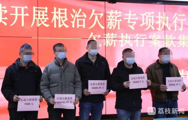 2022年1月,经多方了解,相关员工已就劳动纠纷取得生效法律文书并向武进法院申请执行,市中院将41起劳动纠纷案件进行提级执行,并安排专门人员负责相关款项的发放工作,确保员工们在春节前足额受偿、安“薪”过年,与此同时,社保欠费问题也一并得到解决。据统计,此次活动共计向员工发放工资及补偿金3960800.36元,解决社保欠费共计2453416.23元。