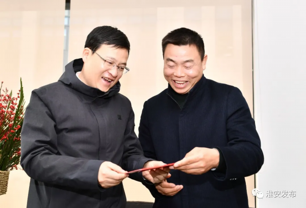 在江苏飞特尔通信有限公司,陈之常亲切看望慰问我市高层次人才代表王洪洋,为他送上新春祝福。王洪洋于2020年6月来淮创办江苏飞特尔通信有限公司,2021年入选“淮上英才计划”创业领军团队,所开发的产品打破海外企业长期垄断,市场前景广阔。