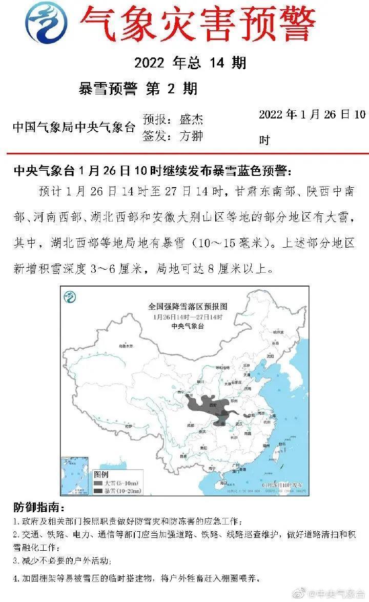 1月26日,中央气象台发布2022年首个暴雪蓝色预警。26日至29日,大范围雨雪覆盖20余省份,8省部分地区有大到暴雪,局地有大暴雪或特大暴雪。