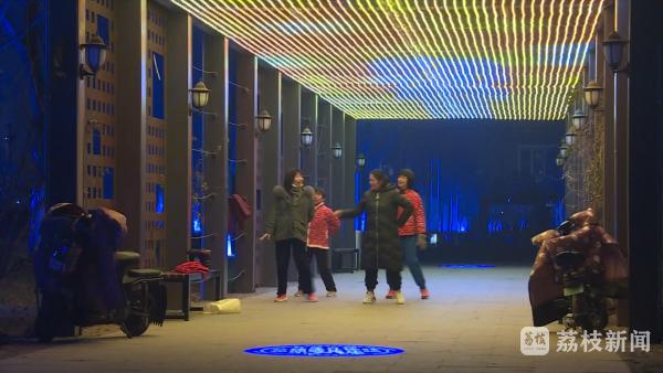 在千鸟园广场内的反诈打卡点更加特别,长廊的两头各装一组LED射灯,投射在地面上形成反诈宣传语,和附近的亮化设施交相辉映,很多市民路过都会驻足拍照。