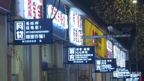 湘江路小吃一条街上“不要让骗子利用你的感情”“小心扫一扫钱就没了”几十个内容不一的宣传灯箱格外醒目,宣传语有趣易记,吸引市民注意。