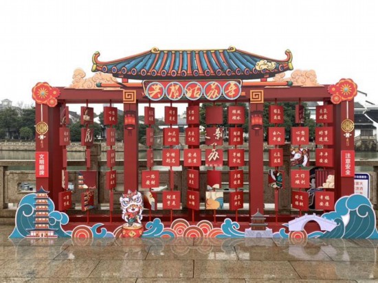 春节来临,姑苏区沧浪街道将举办2022年“虎步迎春万象新·四海齐贺姑苏年”新春系列活动。1月27日晚上,苏州灯彩灯组《虎福临门》点亮百花洲广场、古胥门城墙和古运河畔。