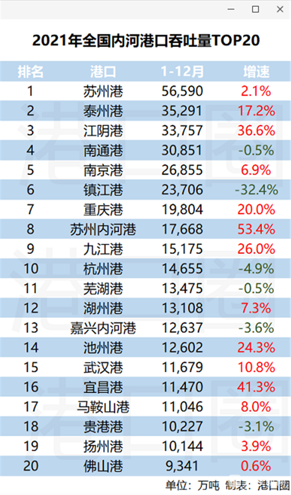 1月28日,记者获悉,近日,2021年全国内河港口吞吐量前20名榜单新近出炉,泰州港以3.5亿吨排名第二。