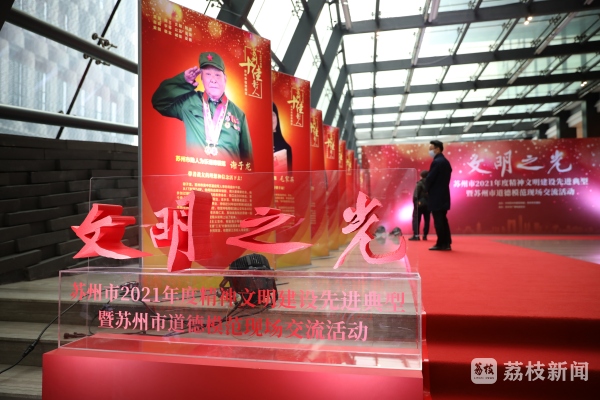 1月28日,由中共苏州市委宣传部、苏州市文明办主办的“文明之光——苏州市2021年度精神文明建设先进典型暨苏州市道德模范现场交流活动”举行。