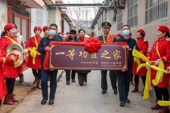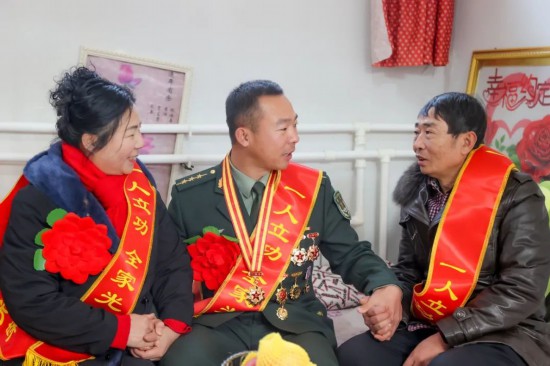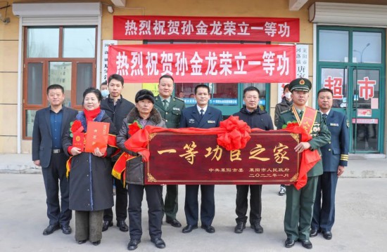 该旅携手当地党政机关和国防动员系统人员,将荣誉送到一等功臣孙金龙的家中。