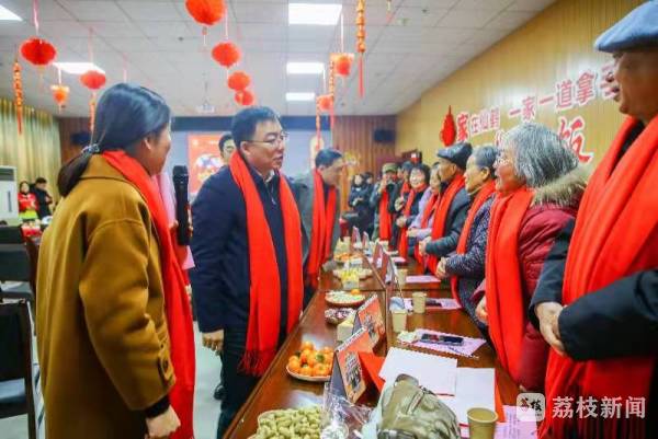 1月29日中午,如皋市仙鹤社区新时代文明实践站内充满欢声笑语,黑塌菜、春卷、蟹黄鱼圆等如皋家常菜冒着热气,小区住户尹晓阳掩不住嘴角的笑意,正在通过大屏幕和在上海不能回家过年的儿子视频连线,“儿子!妈妈和这么多老邻居一起吃年饭呢。我们在家过年挺好的,你放心啊。”