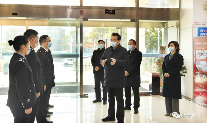 走进淮安海关报关大厅,史志军慰问窗口关员,观看相关展板,详细了解淮安海关过去一年取得的工作成绩。史志军充分肯定了淮安海关在守牢疫情防线、服务地方经济、促进外贸稳定等方面作出的积极贡献,希望淮安海关积极策应我市聚焦打造“绿色高地、枢纽新城”、全面建设长三角北部现代化中心城市奋斗目标,紧扣“枢纽强关、精致淮关”自身定位,充分发挥职能作用和比较优势,进一步加强海关监管和服务,在促进外贸回稳向好、加强口岸载体建设、提升贸易便利化水平等方面出实招求实效,为全市开放型经济发展和跨越赶超作出更大贡献。