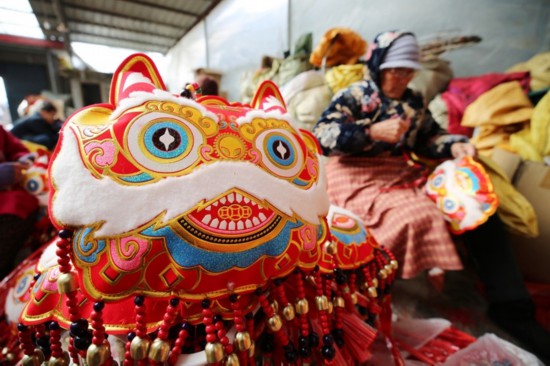 2022年1月20日,山东省临沂市郯城县红花镇加紧生产各类“萌虎”新年饰品。新华社发(张春雷 摄)