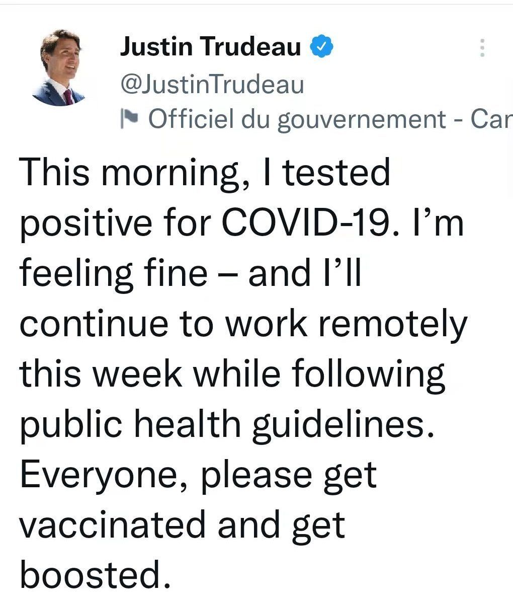 特鲁多再次呼吁全民接种疫苗并打加强针。他在社交媒体上写道:“我感觉还不错。本周将继续远程办公,同时遵循公共卫生指南。” 上周,由于特鲁多一个孩子的新冠病毒检测呈阳性,他开始了5天自我隔离并居家办公。