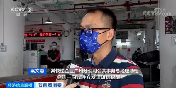 某快递企业广州分公司公共事务总经理助理 梁文惠:会统一向收件方发送短信提醒,这份快件从境外来的。同时我们会落实到进口快件的中间环节尽量减少,包括人员接触,可以做到溯源。