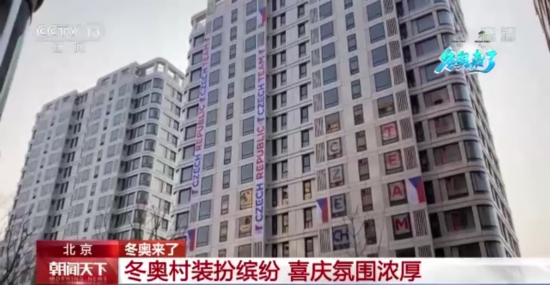 总台记者 张景:不仅中国代表团,其他代表团也亮出了他们特色横幅和标志。像这边捷克的国旗、队徽,突显他们喜欢的红白蓝三色。现在的冬奥村,可谓色彩缤纷。