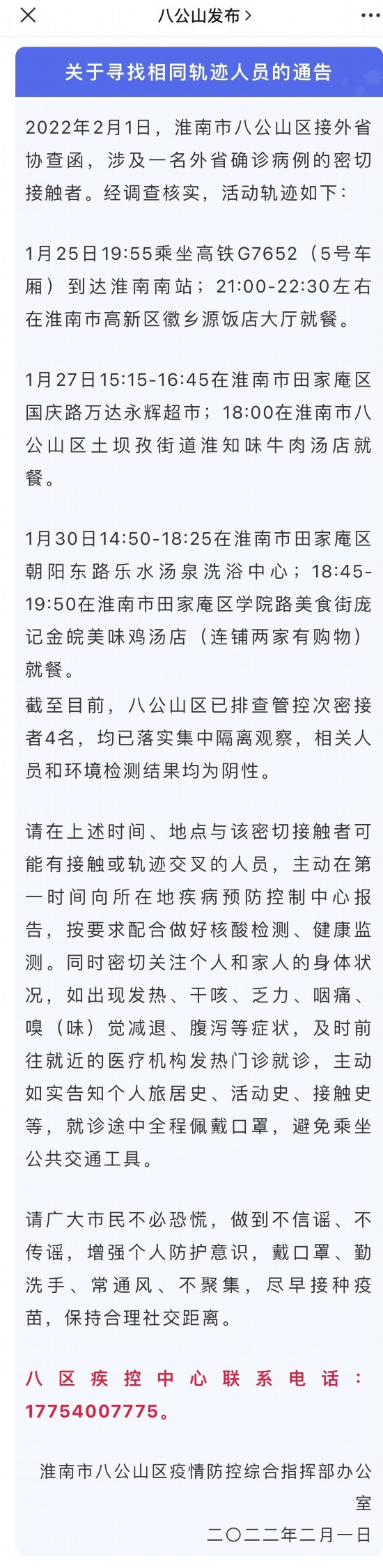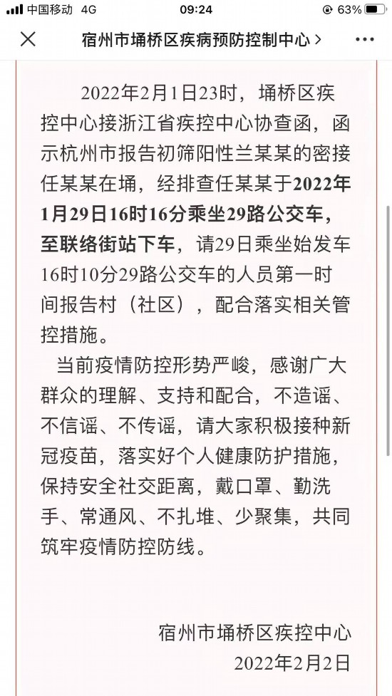 2月1日—2日,安徽宿州、淮南、池州三地发布通告,公布杭州确诊病例密切接触者的行程轨迹。具体内容如下: