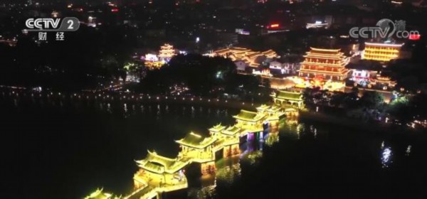 当夜色掩住了笔架山的轮廓,取而代之的是一团团、一簇簇闪耀的灯光,光影交织绚丽夺目,波光荡漾美不胜收,让人不禁感叹千年风雅还看今朝。特别是广济桥的灯光秀,以经典歌曲《恭喜发财》为旋律,分别呈现出飞龙出水、繁花似锦、百花齐放的光影效果,营造出浓浓的过年氛围。