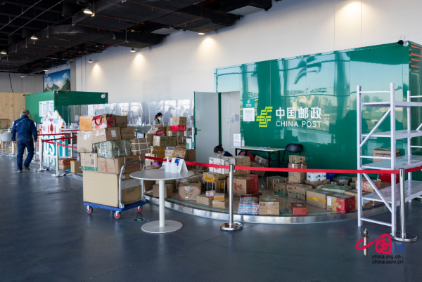 作为世界各国记者的"媒体之家",主媒体中心不仅面积大,而且功能多。便利的邮政服务让世界各地包裹也能在这里集散,在闭环管理的冬奥会场,服务"不闭环"。