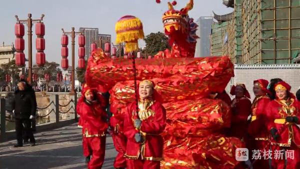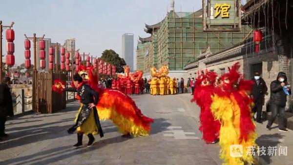 昨天上午,在清江浦活动现场,精彩的舞龙舞狮表演吸引了不少市民驻足观看,为庆祝农历新年的到来,淮安市相关单位把非遗和旅游结合起来,组织了品类繁多的迎新年活动,让游客在热闹喜庆的氛围中感受浓浓的年味。