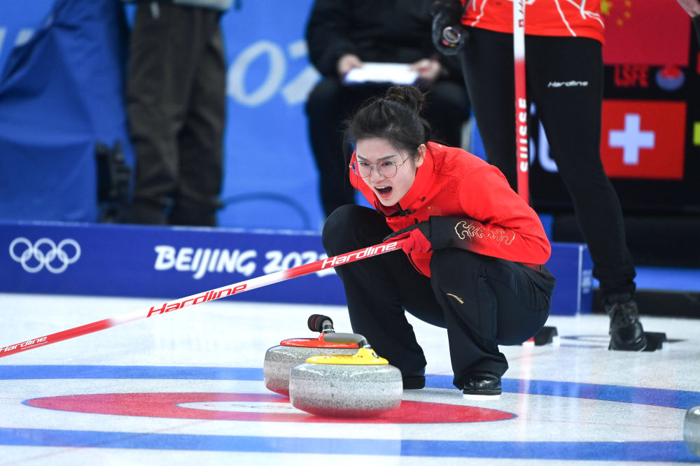 2月2日冰壶混双循环赛,中国队选手范苏圆在比赛中。新华社记者黄孝邦摄