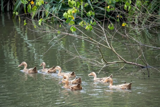 立春节气临近,池塘内鸭子悠哉游弋。图源:视觉中国