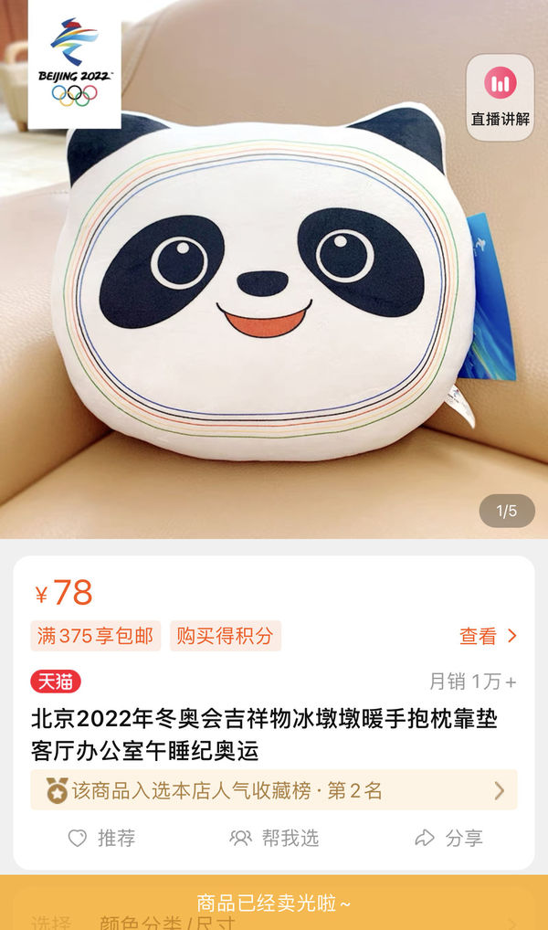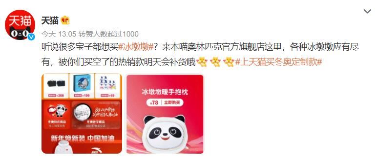 荔枝新闻讯 随着北京冬奥会开幕式临近,吉祥物冰墩墩周边商品也迎来“抢购”。不少网友4日一早就发现,冬奥官方店冰墩墩卖光了。据“天猫”微博号消息,奥林匹克官方旗舰店明天将会对冰墩墩周边商品进行补货。