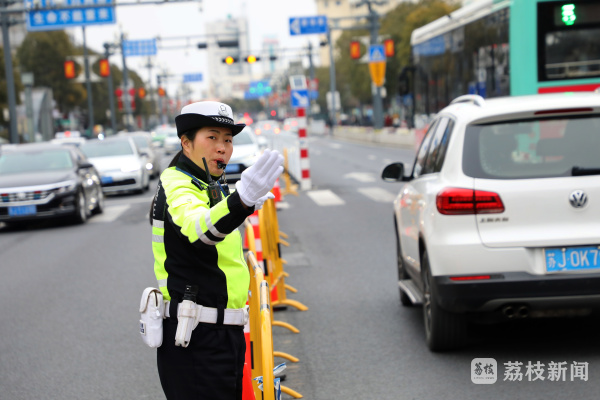 大年初三(2月3日)下午5:38,张方走进中队食堂,显得有些疲惫的她卸下警用装备,跟食堂阿姨要了一杯水喝了暖暖身子。当天下午4点,盐城建军路北金鹰岗车流、人流聚增,路面交通拥堵,在路面巡逻的张方随即赶到现场增援。此时,商业中心的马路上车多缓行、行人拥挤,张方奔走在马路上,用扩音器喊话提示车辆和行人有序通行。