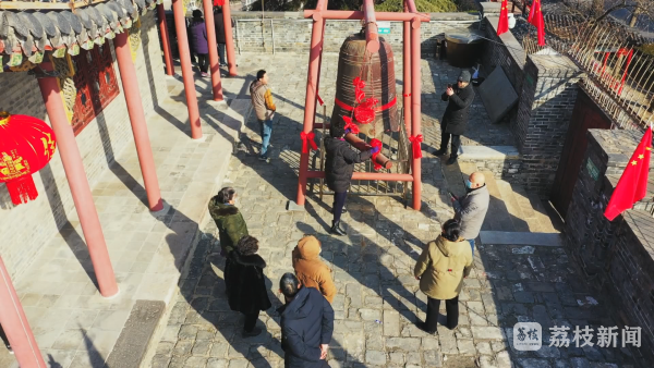 在淮安,大年初五这一天,要登"镇淮楼"、敲"祈福钟"。重达一吨的铜钟声声悠扬,在城市的上空久久回荡。古朴的钟声寄托了人们对新一年的美好期盼。淮安市民说:“我们来敲钟是希望今年财源滚滚,更上一层楼。新的一年,祝我家人身体健康,我自己工作顺利,祝我们伟大的祖国国泰民安,越来越好。”
