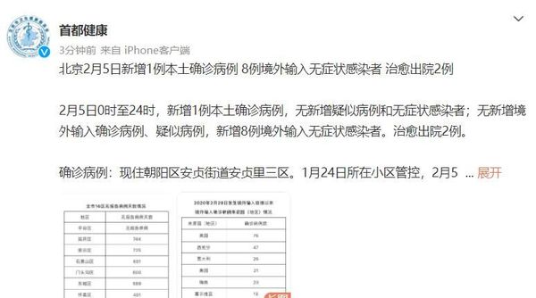 “首都健康”微博截图