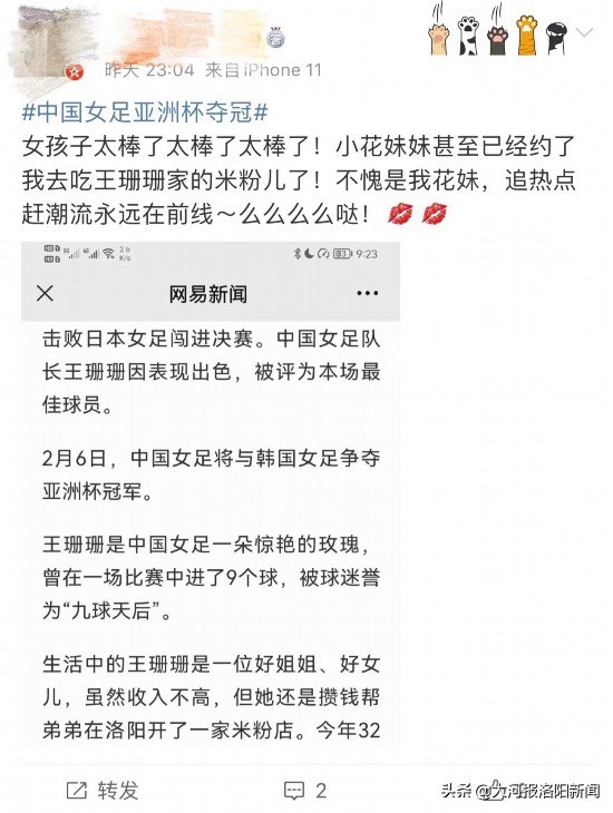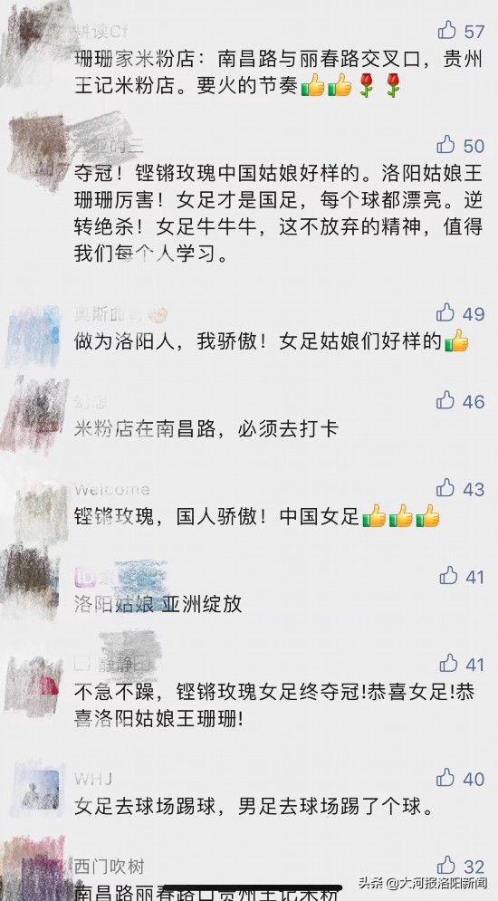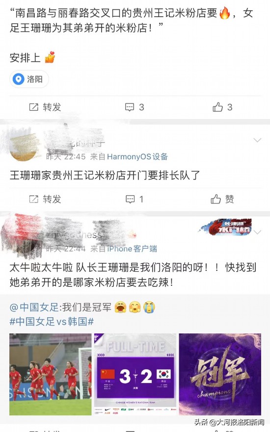 在各大社交平台上,除了对王珊珊顽强拼搏的赞许,一波“珊珊热浪”涌向洛阳涧西区这个普通家庭。更有人在社交平台上留言珊珊家经营米粉店,引来一波网友去珊珊家的米粉店“追星”热潮。